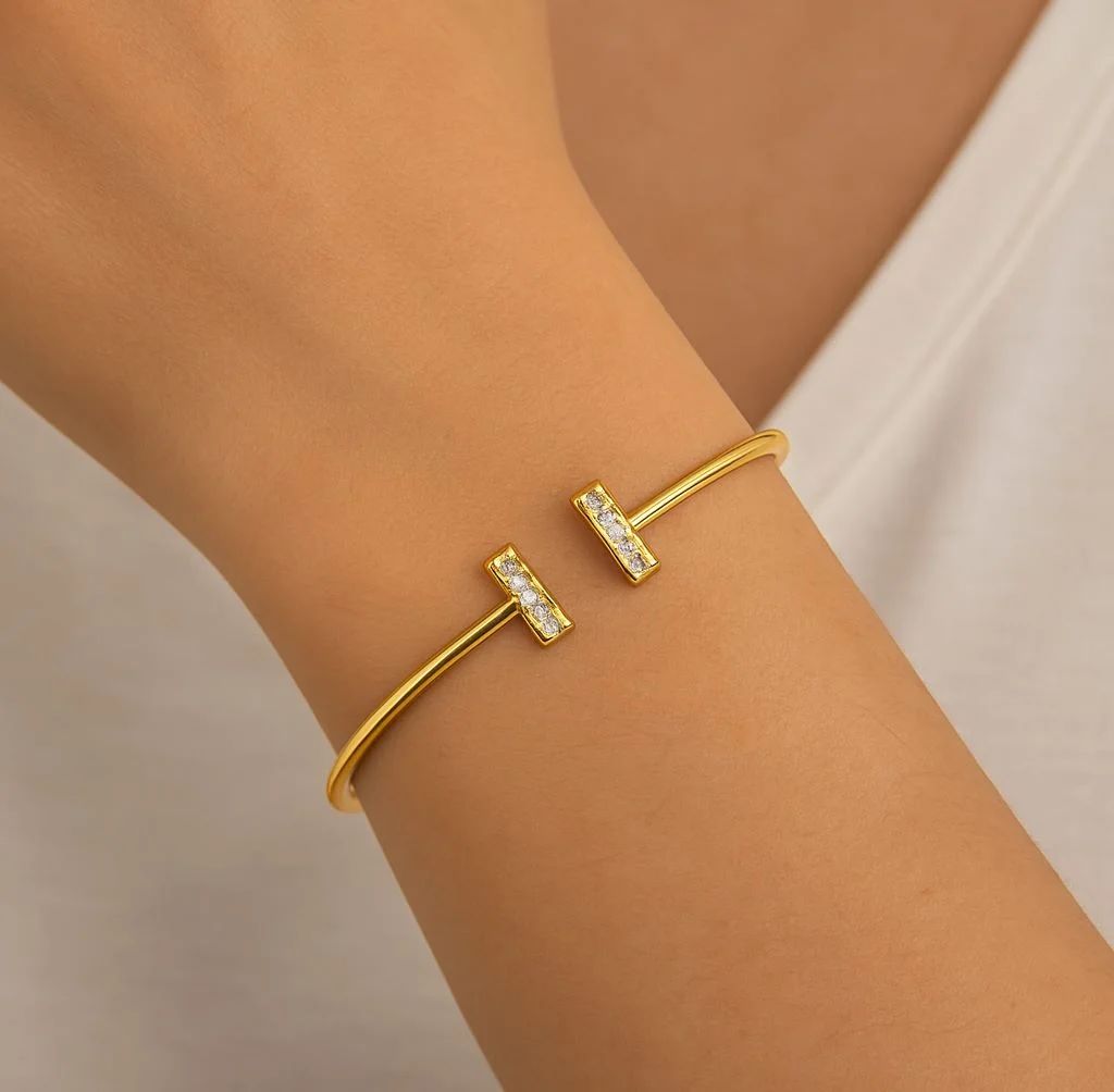 Open Bangle Bracelet direka khas untuk wanita yang mengutamakan gaya ringkas tetapi kelihatan elegan. Bentuk terbukanya memudahkan pemakaian dan menambah sentuhan elegan yang halus pada pergelangan tangan. Aksesori ini sesuai digayakan dalam keadaan urusan rasmi mahupun aktiviti santai.